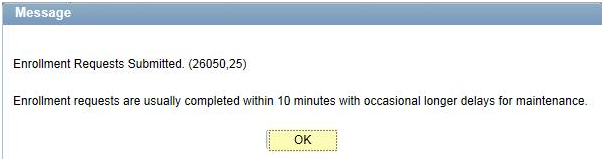 - The enrollments will process and appear in Canvas within the specified time. If you would like to view the status of your request, select the "View My Requests" tab