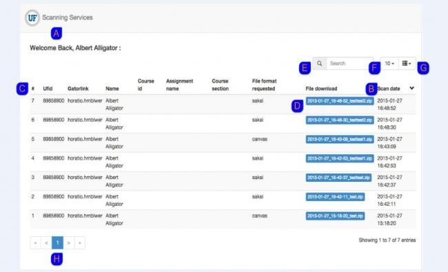 If you are utilizing Scanning Services, you will receive an e-mail containing the link to the Scanning Services portal. Here you will be able to obtain your output .zip file. Your .zip file will contain a no_match.txt file and a .csv file. Within the Scanning Services portal you will see the following:
